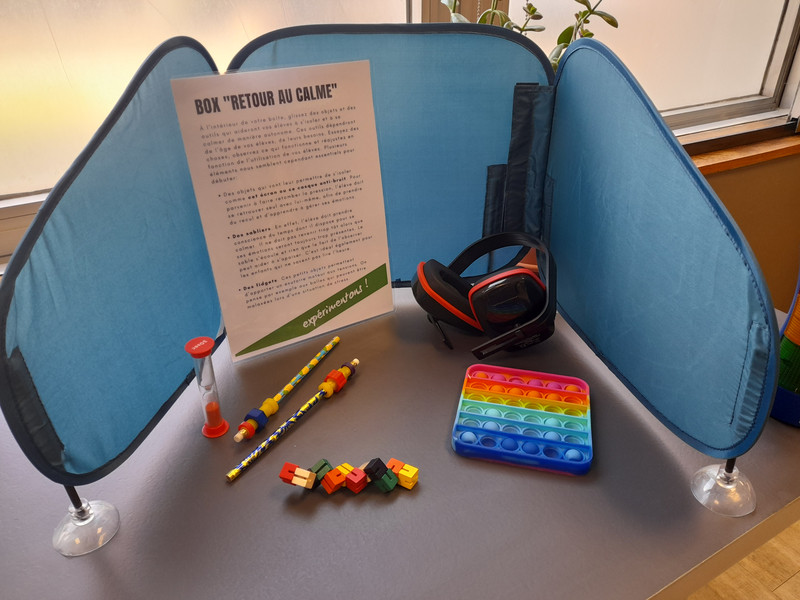 Jeux coopératifs, kit « retour au calme », outils sonores, matériels numériques (claviers DYS, souris scanner, etc.), outils pour aborder la lecture, les mathématiques, la géométrie... autant de ressources permettant de faciliter la scolarité des enfants.