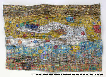 Dickens Otieno, Elements, 2019, morceaux d’aluminium tissé dans un sac de café, Circle Art Gallery, Nairobi, Kenya.