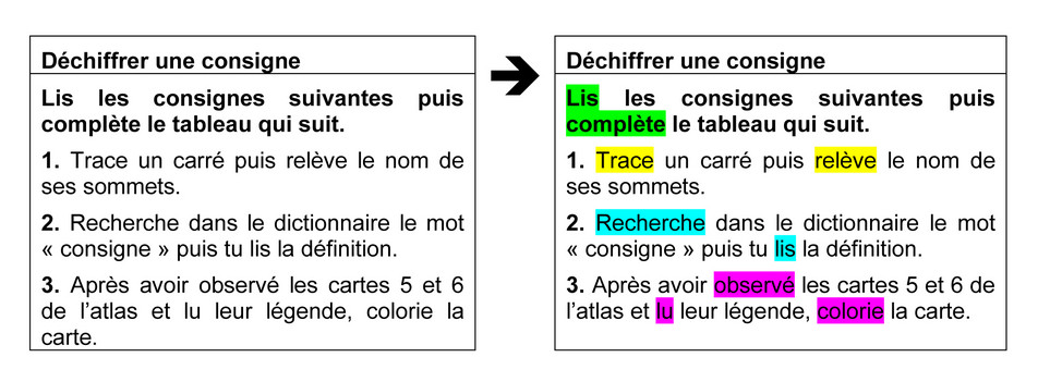 Le fait de renforcer certains mots ou les valeurs centrales de l’énoncé aide l’élève à identifier les points essentiels à prendre en considération.