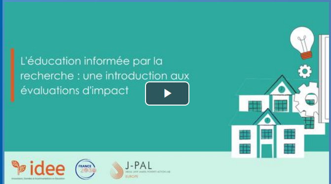 Découvrez le MOOC "L’éducation informée par la recherche : une introduction aux évaluations d’impact", développé par le J-PAL Europe dans le cadre du programme Innovations, Données et Expérimentations en Education (IDEE), pour comprendre et utiliser les résultats de la recherche expérimentale.