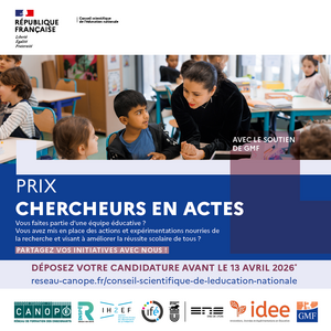 Le Prix Chercheurs en Actes met à l’honneur les initiatives et méthodes portées par des équipes pédagogiques et récompense des actions qui s’appuient sur la recherche et l’expérimentation.