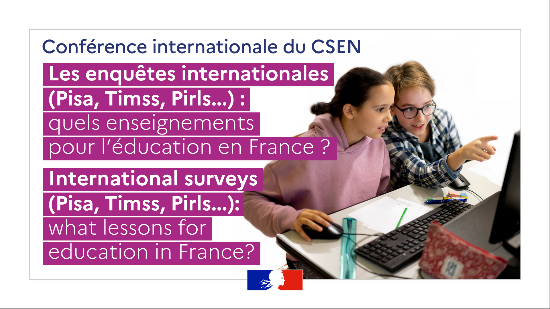 Many international surveys (PISA, TIMSS, PIRLS...) highlight the major challenges French education system faces, The French education system is facing major challenges, from the decline in mathematical skills over the past thirty years to the growing learning gap between children from disadvantaged backgrounds and their more privileged peers. What are these surveys and what do they tell us about the reading, maths and science levels of French students, their well-being and that of their teachers? What can be done to improve the situation in France, in the light of experiences abroad?
