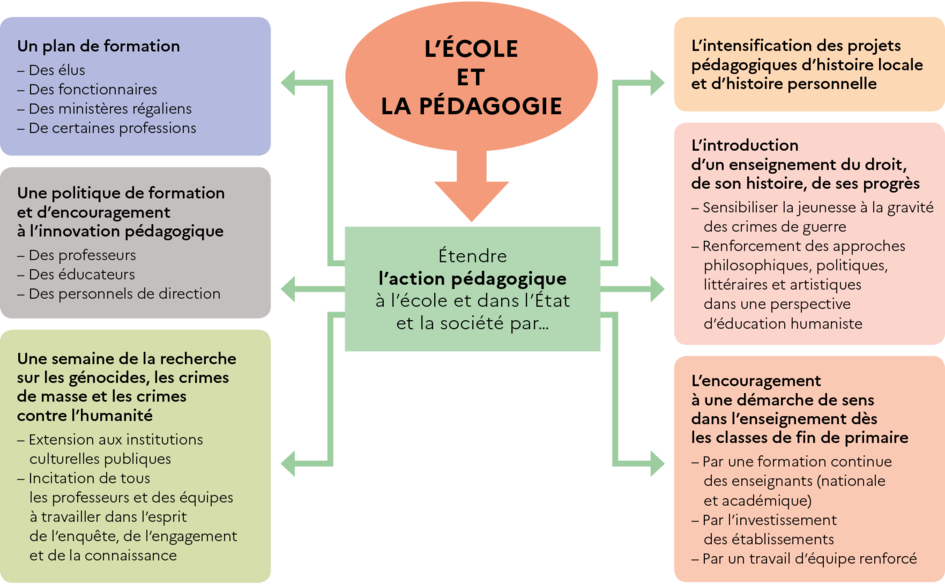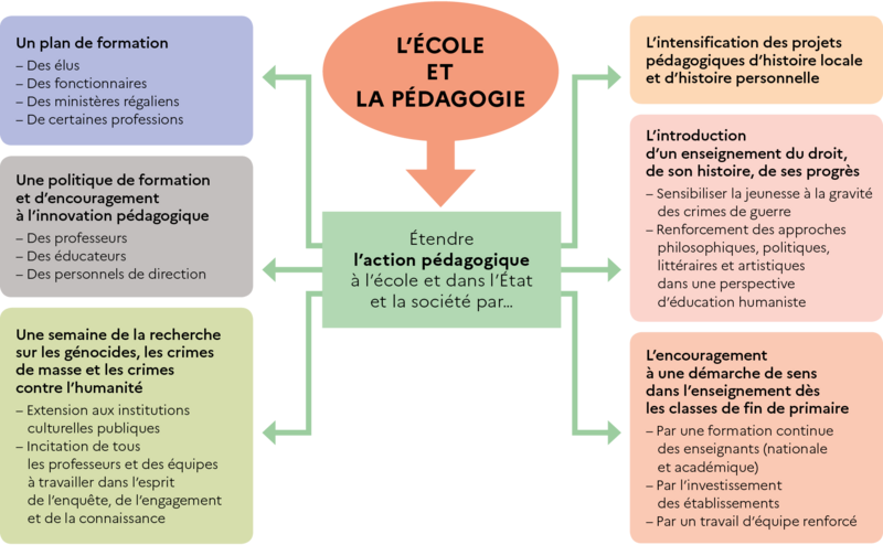 Schéma de présentation des recommandations du Rapport de la Mission Génocides concernant l’École et la pédagogie