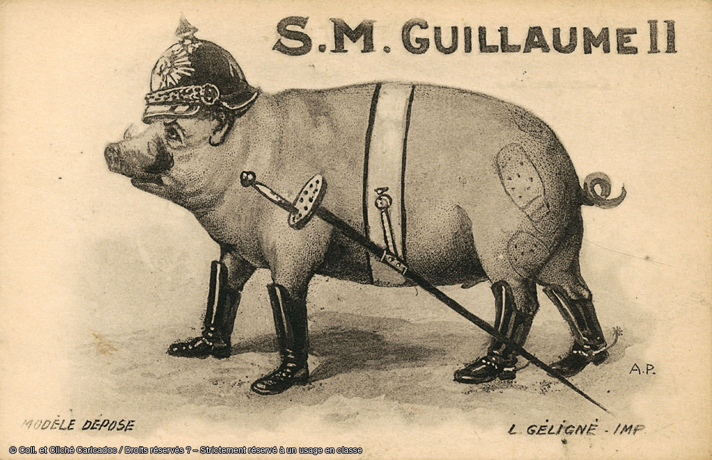 Guillaume II mauditGuillaume II en cochonCaricature française sur les responsabilités de la guerreCaricature française sur Guillaume IICaricature française sur la victoire