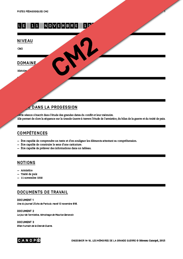 L’Armistice vu par M. GenevoixBilan humain de la guerreFiche de prép Le 11 novembre 1918Frise chronologique à trousSignature de l'ArmisticeStatue de Foch à RethondesLe dernier soldat français mort lors de la guerreFochUne de L'Écho de ParisWagon de l'Armistice