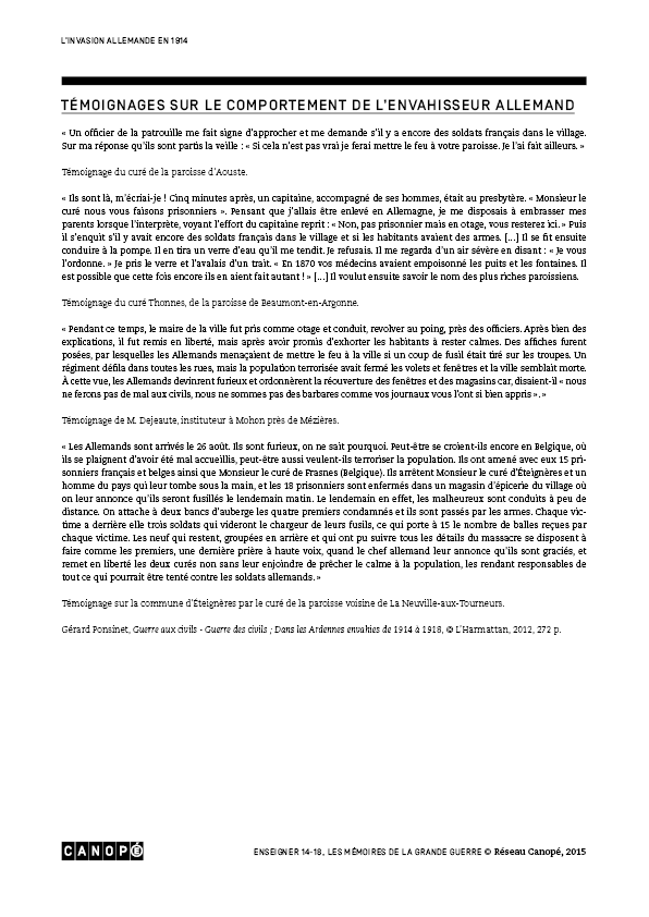 Le comportement de l’envahisseurRuines du village de HaybesCaricature sur les mythes de l'invasion allemandeLes taxis de la MarneBataille de Givet