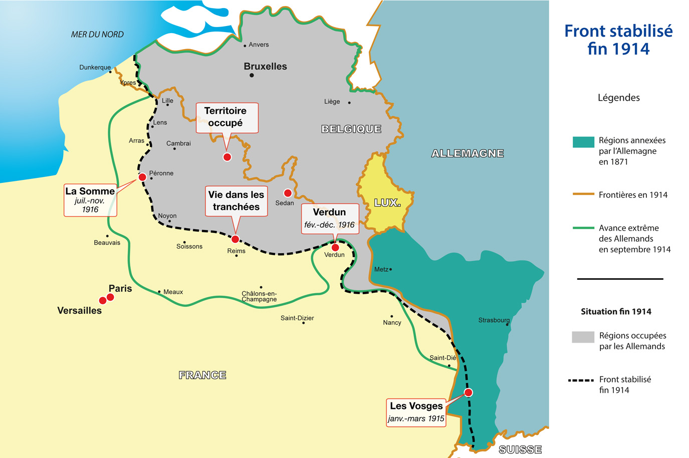 Verdun : une attaqueVerdun aus der deutscher SichtJournal de guerre du docteur PoisotFiche de prép VerdunFrise chronologiqueFort de Douaumont avant la batailleFort de Douaumont après la bataillePrisonniers allemandsPétainVerdun - Félix VallottonCarte générale du front