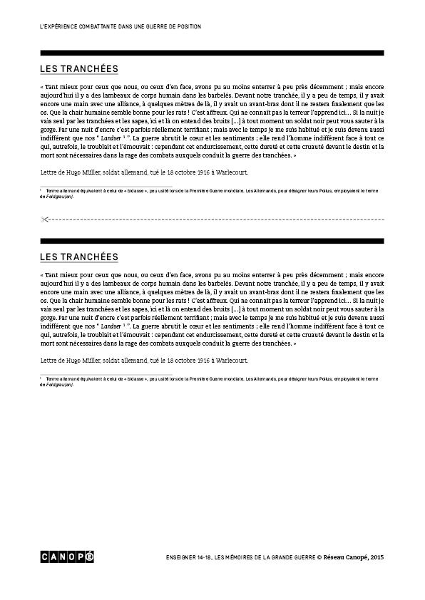 Les lieux de mémoire > Vivre sur le front > L'expérience combattante