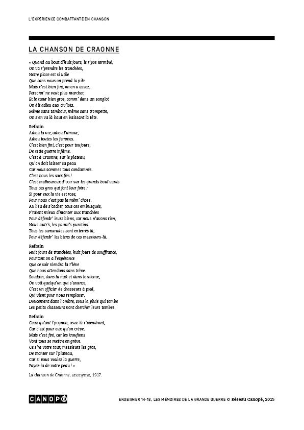 La chanson de Craonne