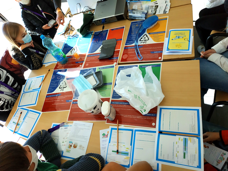 Les élèves, très impliqués réfléchissent à ces questions avant d’envisager des pistes de solutions : ateliers Zéro déchet, envoi à un laboratoire de prélèvements dans les cours d’eau pour analyse, choix d’ustensiles durables (et non à usage unique)…