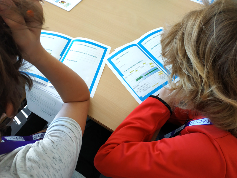 Sont évoquées plusieurs idées à mettre en œuvre de retour au collège : mettre en place une politique de tri dans la classe ou l’établissement (à la cantine), proposer le compostage dans les collèges où ce n’est pas encore fait, transmettre aux autres élèves les informations recueillies pendant l’atelier…