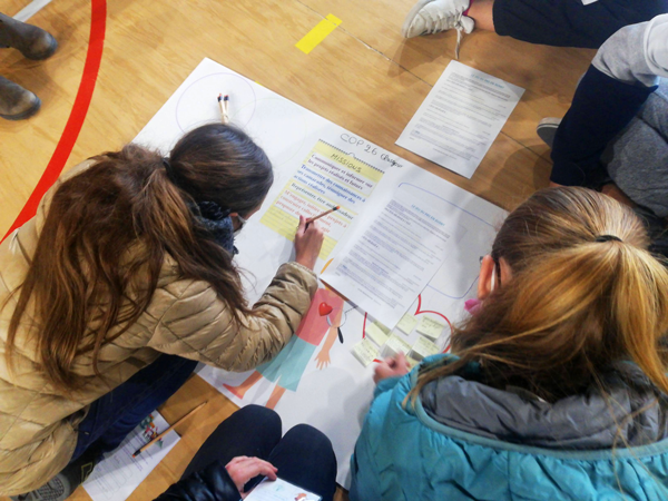 Discussions et échanges autour du rôle et des missions d’un éco-délégué avec, comme résultat, un poster composé par chaque équipe.