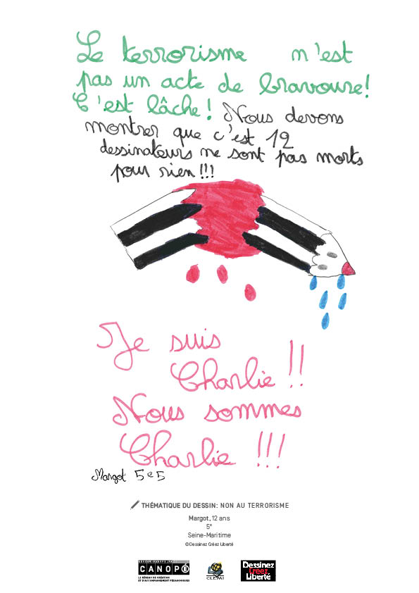 Charlie Hebdo a reçu des milliers de dessins après la tuerie préméditée des membres de sa rédaction. Les premiers furent envoyés dès le 7 janvier 2015, d’autres ont suivi, intégrant dans leur geste les répliques de ces assassinats des 8 et 9 janvier. Ils ont été réalisés par des enfants et des adolescents.