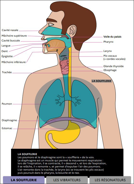 Pour garder une voix en bonne santé, il faut comprendre son fonctionnement physiologique. On associe souvent la voix aux seules cordes vocales. Mais, du diaphragme au bout des lèvres, c’est tout un mécanisme qui permet la parole.