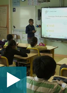 Dans le troisième atelier, les élèves inventent des exercices d'entraînement pour la classe : ils écrivent des phrases mobilisant un point grammatical précis (les homophones dans le cas du reportage), les intègrent dans un logiciel utilisant l'interactivité du TBI.