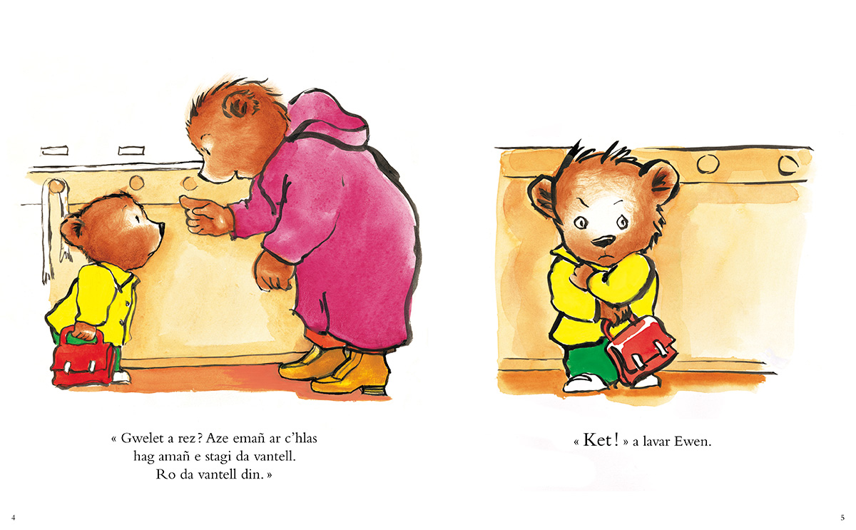 Hiziv ez a Ewen d'ar skol evit ar wech kentañ. D'an holl e respont « Ket ! » : d'e vamm, d'ar skolaerez, d'ar vugale all…